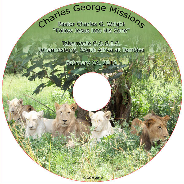 DVD "Follow Jesus Into His Zone" Item: DPJ21410 Pastor Charles G. Wright Tabernacle C.O.G.I.C. Johannesburg, South Africa